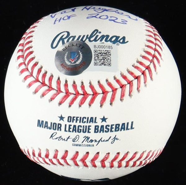 Pat Hughes Signed Official M.L. Baseball "Extensive Inscriptions"(Beckett)