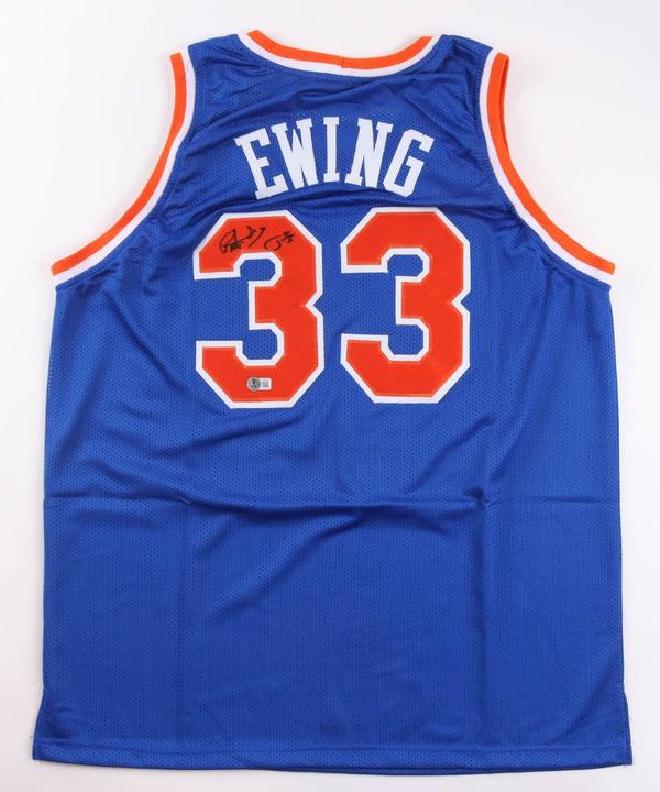 Custom on-court style jersey with everything pressed on, size adult XL. Hand-signed by Patrick Ewing (HOF). The autograph includes an official Beckett Authentication Services serially numbered scannable hologram with QR...