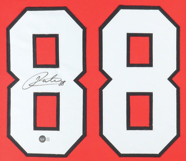 Custom frame measures approximately 35" x 43" in size and features a jersey hand-signed by Patrick Kane. The lot / autograph(s) includes an official Beckett Authentication Services serially-numbered hologram and...