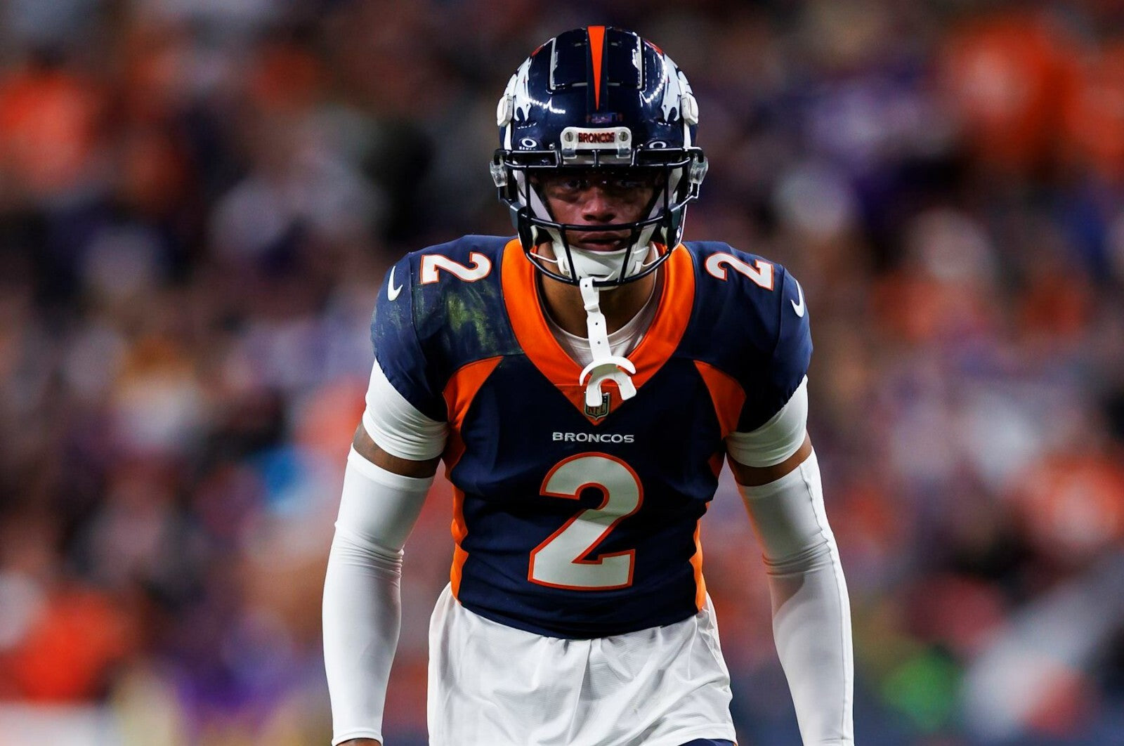 This autographed custom on-field style adult XL jersey has been personally hand-signed by Patrick Surtain II of the Denver Broncos.