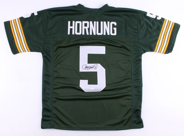 Custom on-field style jersey, size XL. Hand-signed and inscribed in black felt-tip pen by Paul Hornung (HOF). Hornung died from Dementia at the age of 84 on November 13, 2020, in Louisville,...