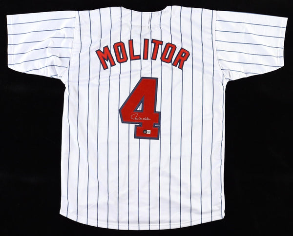 Custom on-field style jersey with everything sewn on, size XL. Hand-signed by Paul Molitor (Minnesota Twins, HOF). The autograph includes an official Beckett Authentication Services serially numbered scannable hologram and...