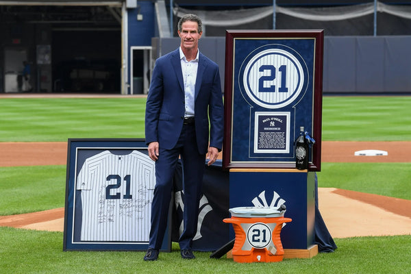 Custom frame measures approximately 35" x 43" in size and features a jersey which has been hand-signed in silver paint pen by Paul O'Neill. The lot / autograph(s) includes an...