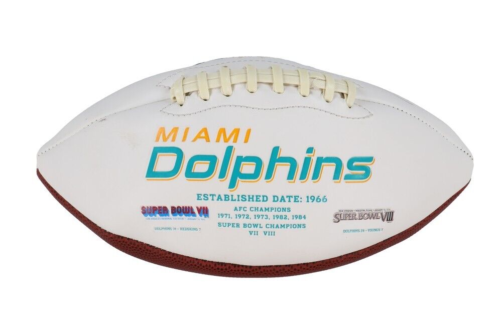 Miami Dolphins logo football. Hand-signed and inscribed by Paul Warfield (HOF).