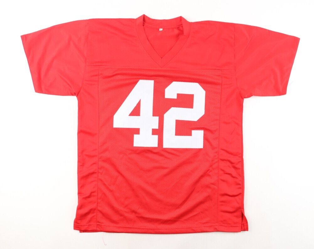 Custom on-field style jersey. Everything is sewn on, size XL. Hand-signed by Paul Warfield.