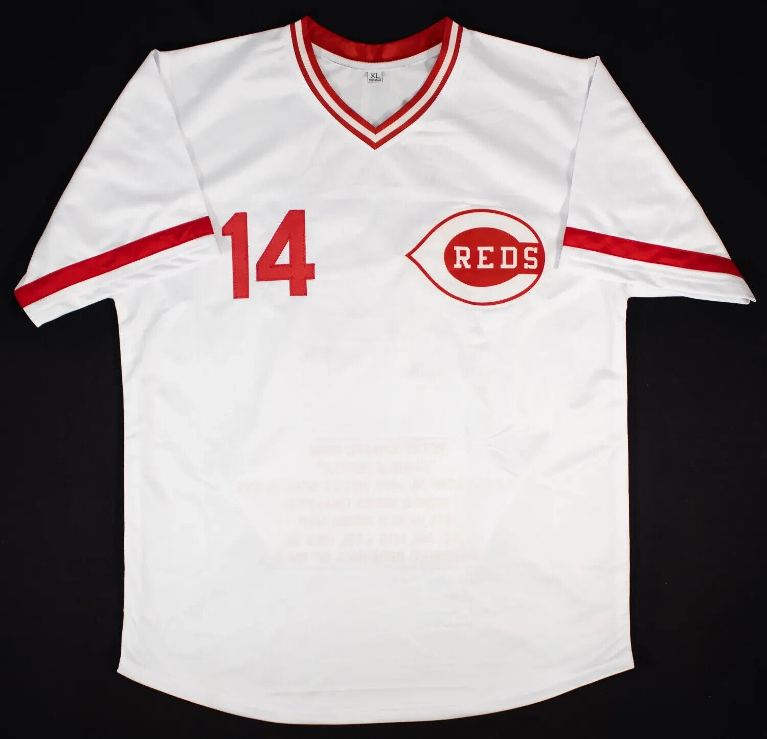 Pete Rose Signed Cincinnati Reds Career Highlight Stat White Jersey (JSA COA)