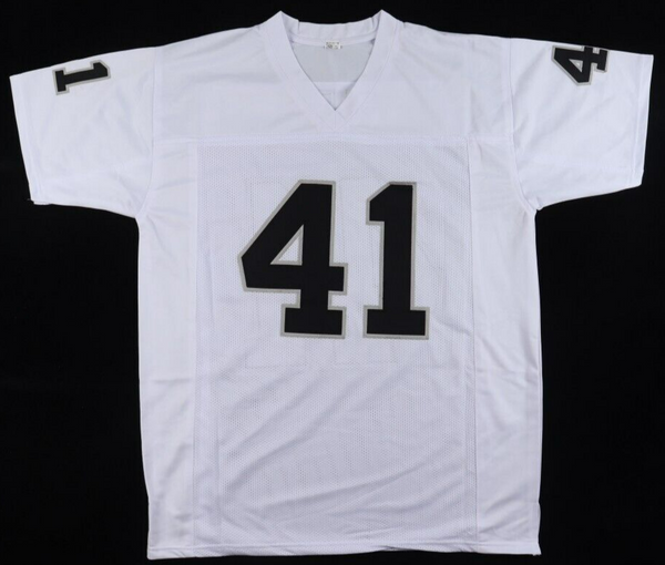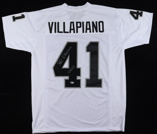 Custom jersey. Everything sewn on, size XL. Has been hand-signed and inscribed by Phil Villapiano. The lot / autograph(s) includes an official Beckett Authentication Services serially numbered hologram for authenticity...