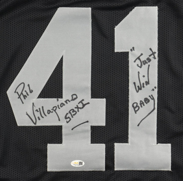 Phil Villapiano Signed Oakland Raiders Jersey Inscribed "SBXI & Just Win Baby"