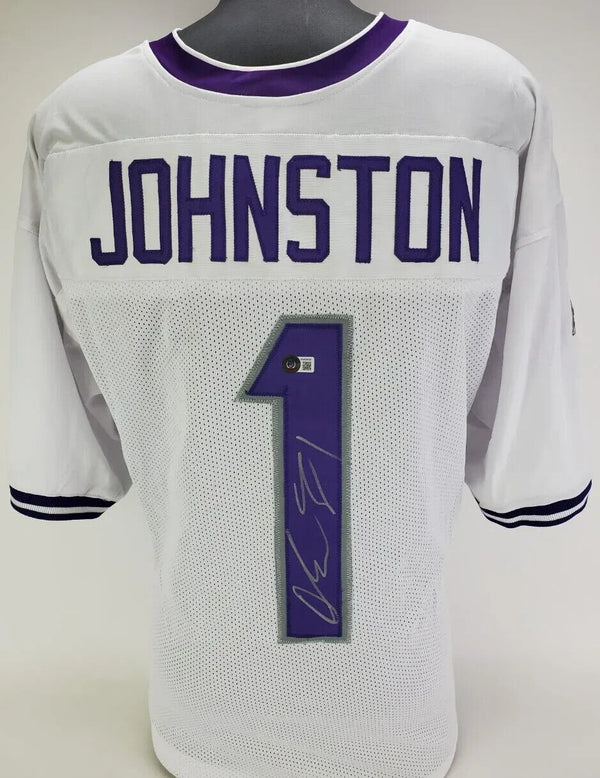 This autographed jersey has been personally hand-signed by Quentin Johnston of the TCU Horned Frogs. This autograph is certified by Beckett Authentication Services (BAS) Witness Certification. That means that a...