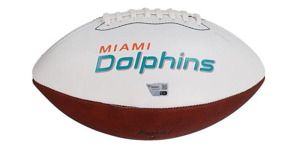 Miami Dolphins logo football has been hand-signed by Raheem Mostert. Please note, the football does not inflate, but will still display nicely. The autograph includes an official Fanatics hologram for authenticity...