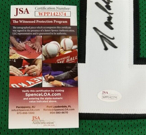 Custom on-field style jersey. Everything sewn on, size XL. Hand-signed in black felt tip pen by Randall Cunningham. The lot / autograph(s) includes an official James Spence Authentication (JSA) hologram...