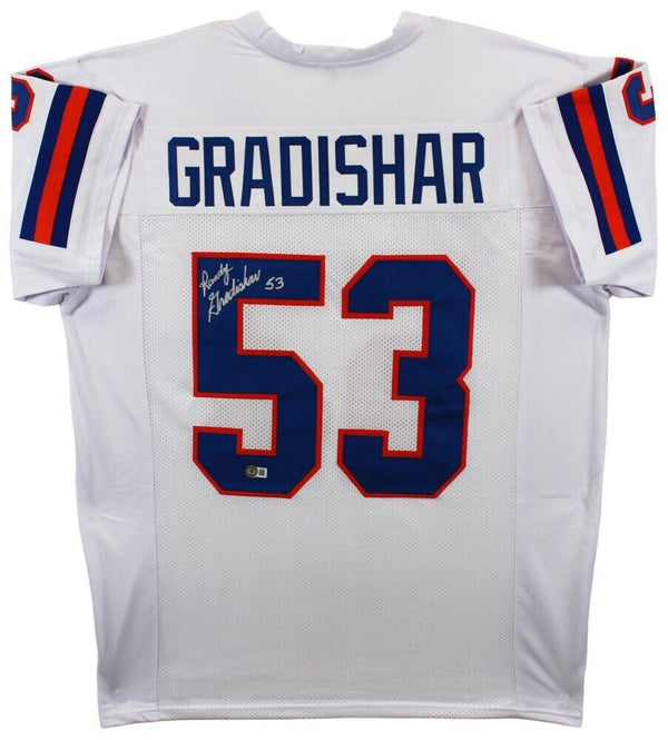 Custom on-filed style Jersey is size adult XL, everything is sewn on, and has been hand-signed by Randy Gradishar.The autograph includes an official Beckett Authentication Services serially numbered hologram for...