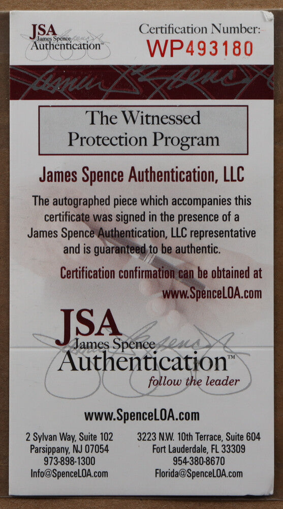 The lot / autograph(s) includes an official James Spence Authentication (JSA) hologram and matching COA for authenticity purposes. The signing of this item was witnessed by JSA.