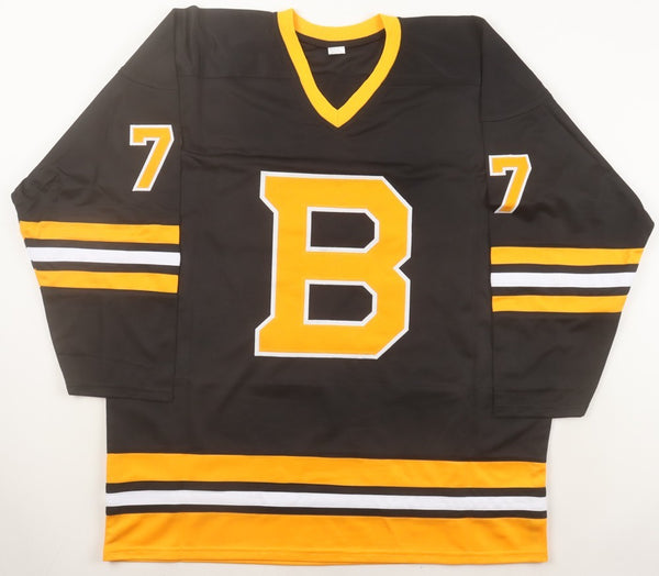 Custom on-ice style jersey. Everything sewn on, size XL. Hand-signed and Inscribed in silver paint pen by Ray Bourque (HOF). The autograph includes an official James Spence Authentication (JSA) hologram...