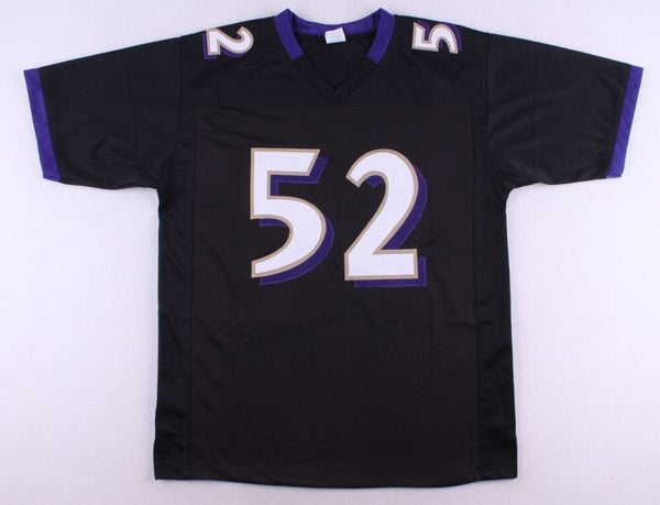 Custom on-field style jersey. Everything sewn on, size XL. Hand-signed in black felt-tip pen by Ray Lewis. The autograph includes an official James Spence Authentication (JSA) hologram. Authentication: JSA Hologram...