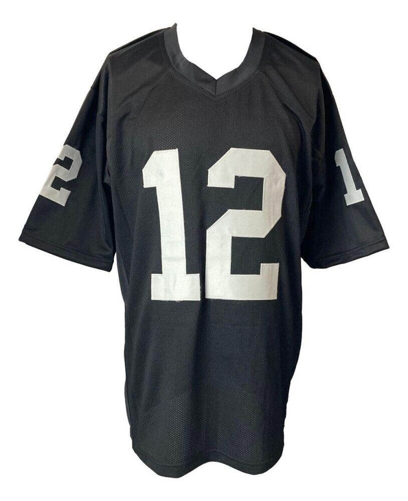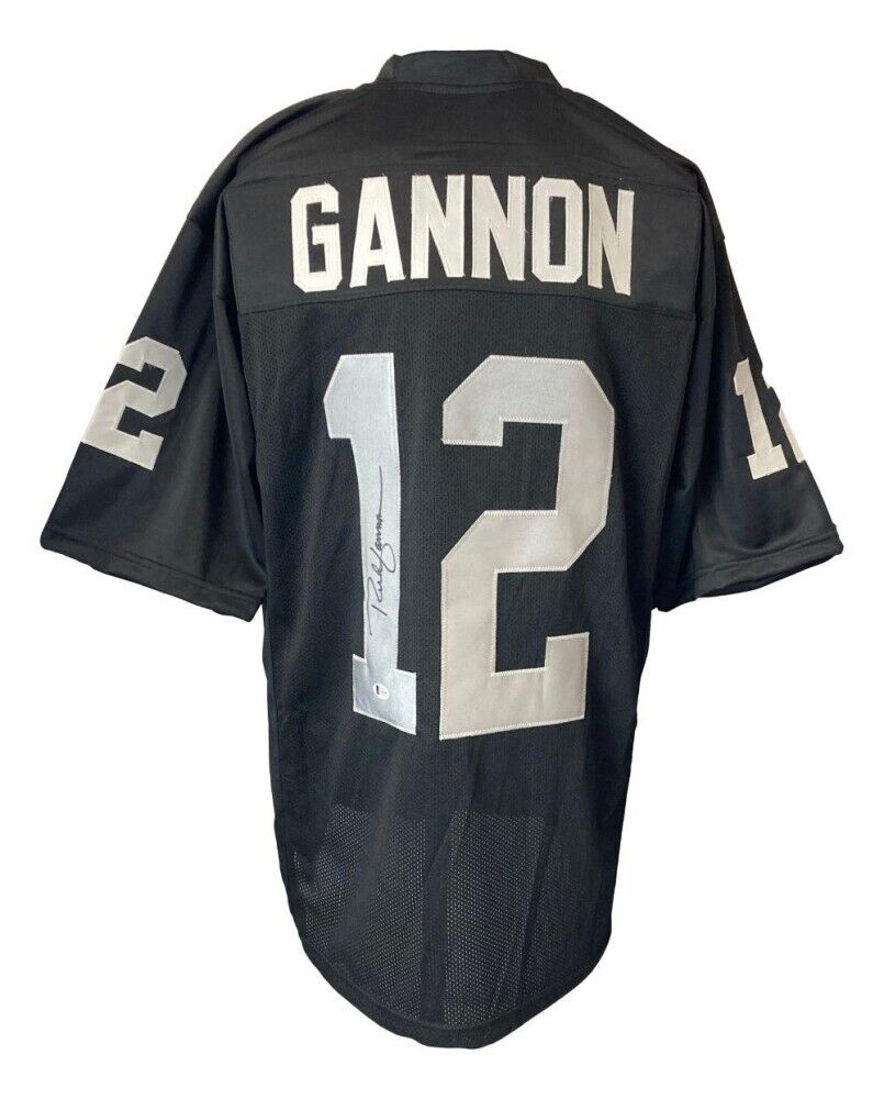 Custom on-field style jersey. Everything is sewn on, size XL. Hand-signed in black felt-tip pen by Rich Gannon. Please note: the number two is slightly off color from the number one, as shown in the photo.