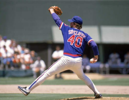Custom on-field style Chicago Cubs Blue Road jersey with everything pressed on, size adult XL. Hand-signed by 1984 Eastern Division Champion starting Pitcher Rick Sutcliffe. Rick had a 16-1 Record...