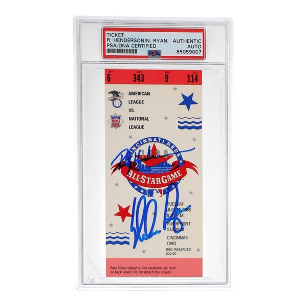 Rickey Henderson & Nolan Ryan Signed 1988 Original All-Star Game Ticket /PSA Cap