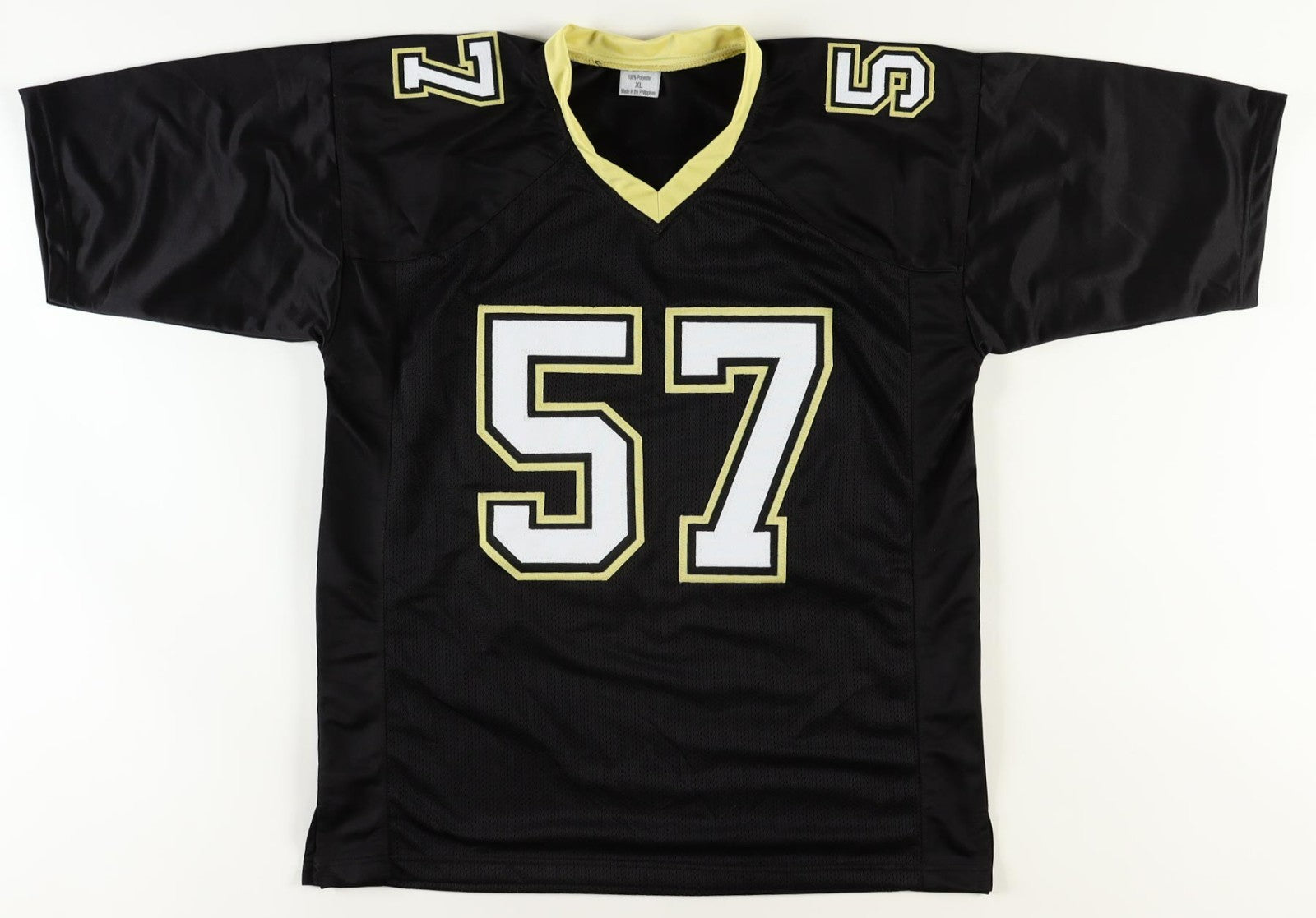 Custom on-field style jersey. Everything is sewn on, size XL. Hand-signed and inscribed by Rickey Jackson (HOF).