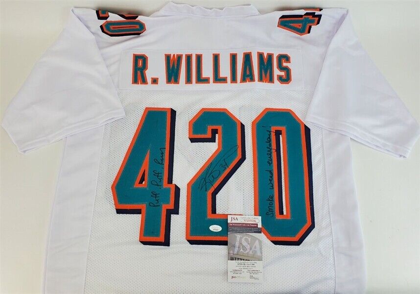 Ricky Williams Signed Dolphins 420 Jersey "Smoke Weed Everyday! & Puff Puff Run"