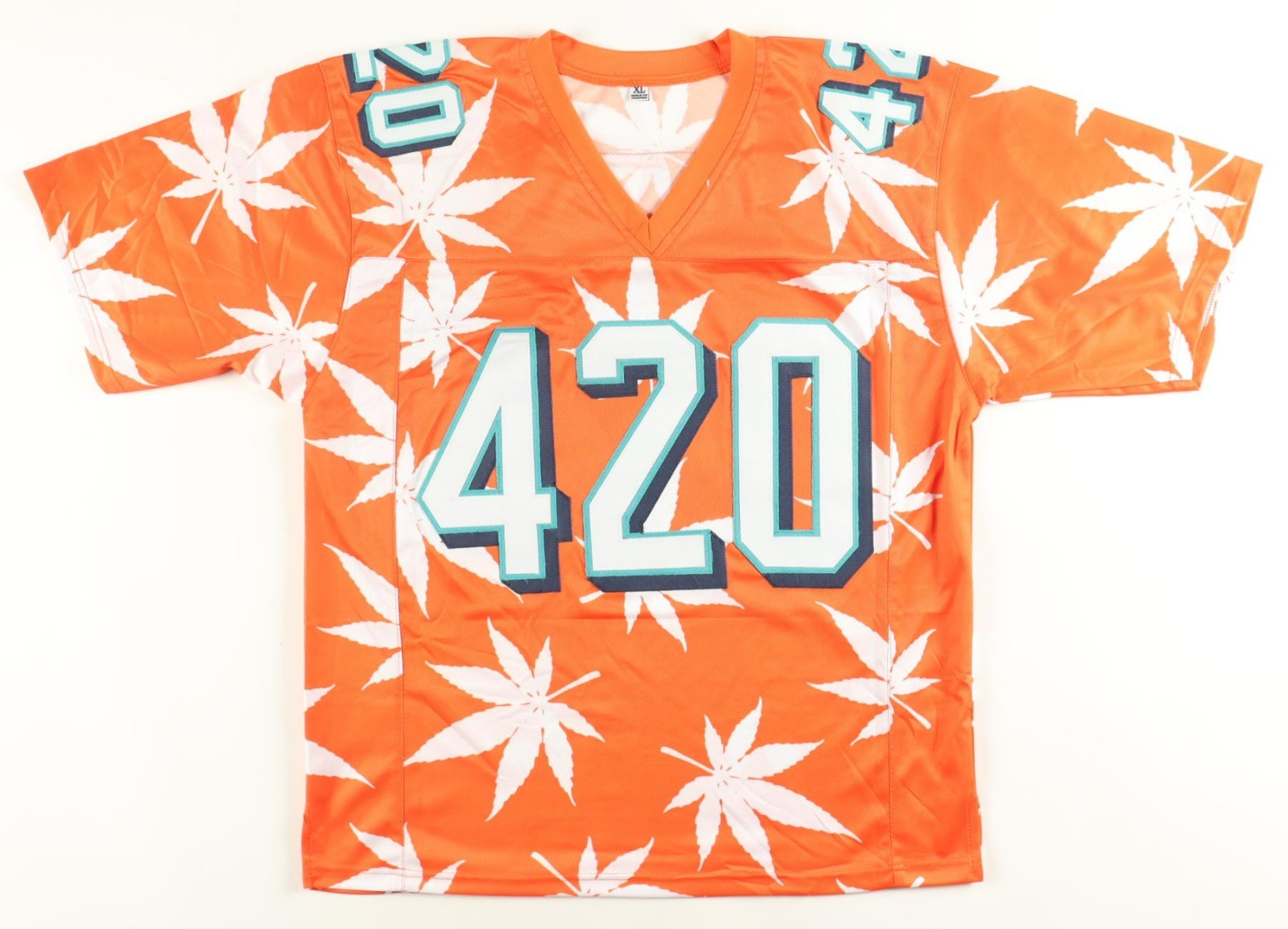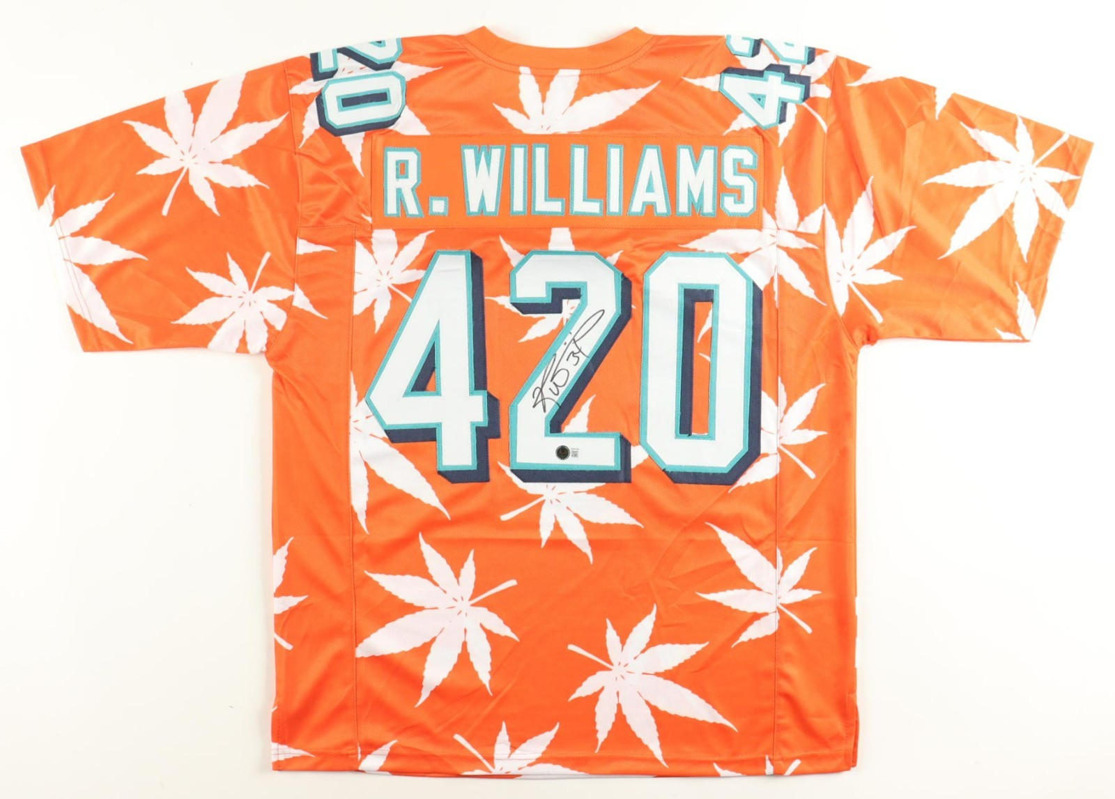 Ricky Williams Signed Miami Dolphins Orange Weed Print 420 Jersey (Beckett) R.B.