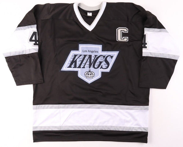 Custom on-ice style jersey everything sewn on, size Adult Large. Hand-signed by Rob Blake (Los Angeles Kings, Colorado Avalanche, San Jose Sharks, HOF).The autograph includes an official Beckett Authentication Services...