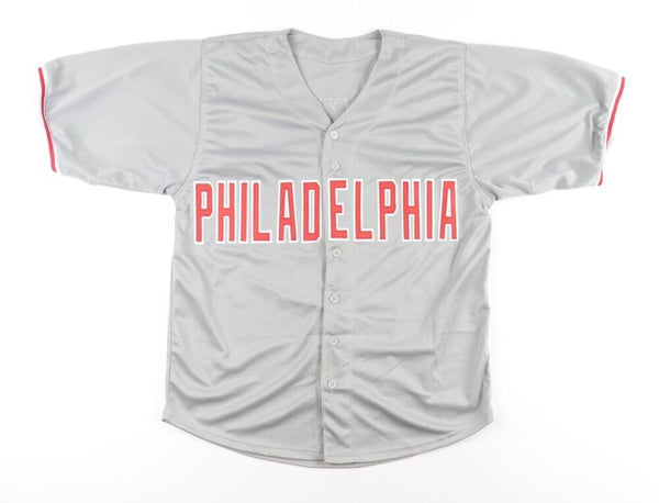 Custom on-field style jersey with everything sewn on, size XL. Hand-signed by Rob Thomson.The autograph includes an official Beckett Authentication Services serially numbered hologram and QR Code Card for authenticity...