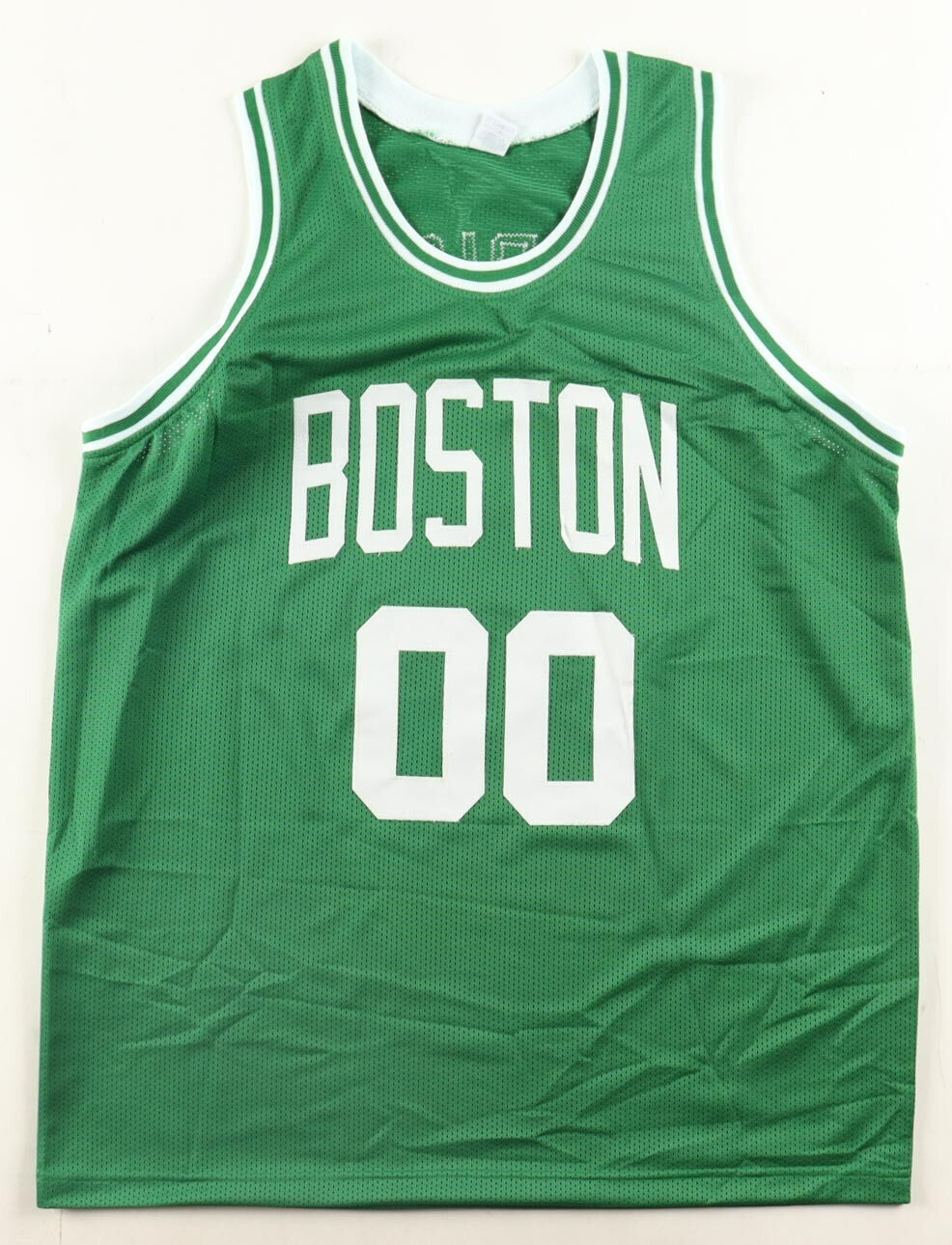 Custom on-court style jersey. Everything sewn on, size XL. Hand-signed by Robert Parish (HOF).