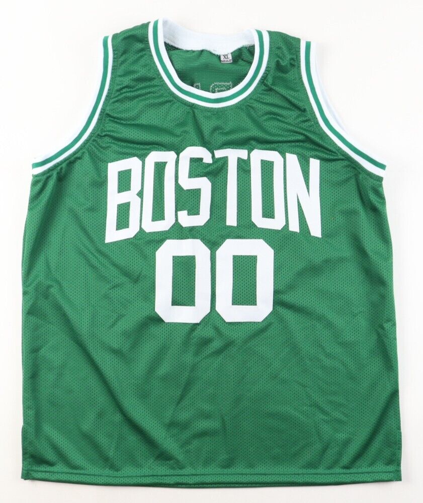 Custom on-court style jersey. Everything sewn on, size XL. Hand-signed by Robert Parish (HOF).