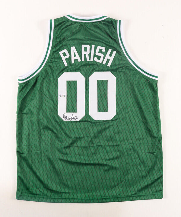 Custom on-court style jersey. Everything sewn on, size XL. Hand-signed by Robert Parish (HOF). The lot / autograph(s) includes an official PSA/DNA hologram and matching COA for authenticity purposes. The...