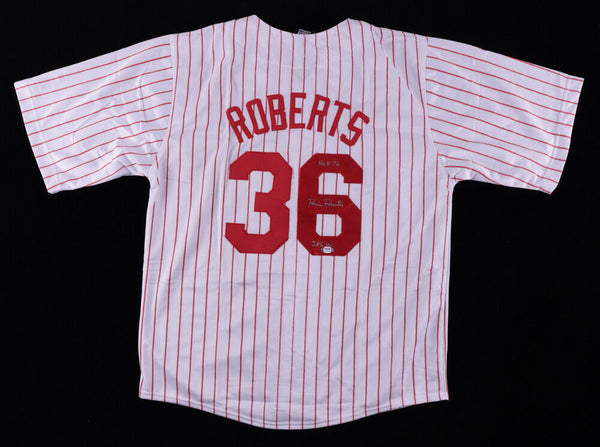 Custom on-field style jersey. Everything is sewn on, size XL. Hand-signed and inscribed by Robin Roberts (D. 2010, HOF). The lot / autograph(s) includes an official PSA/DNA hologram for authenticity...