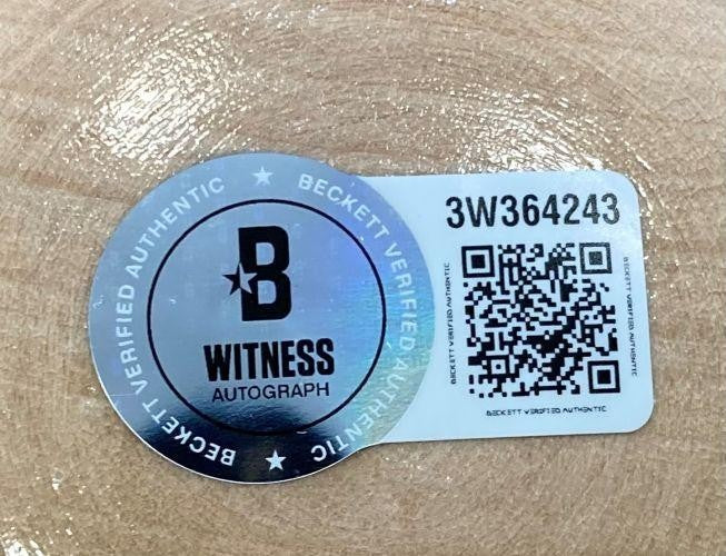 The autograph includes an official Beckett Authentication Services serially numbered scannable hologram and QR Code card for authenticity purposes. The signing of this item was witnessed by Beckett.