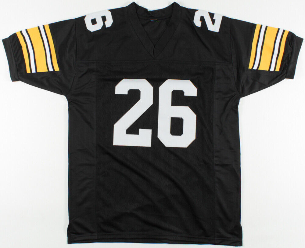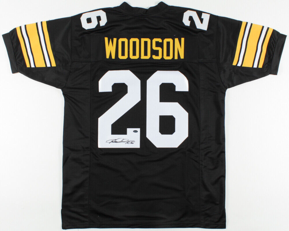 Custom on-field style jersey. Everything sewn on, size XL. Hand-signed in black felt tip pen by Rod Woodson (Steelers HOF).