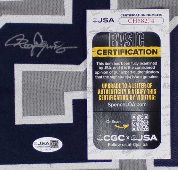 Custom on-field style jersey. Everything sewn on, size XL. Hand-signed in silver paint pen by Roger Clemens. The autograph includes an official James Spence Authentication (JSA) hologram and matching COA...