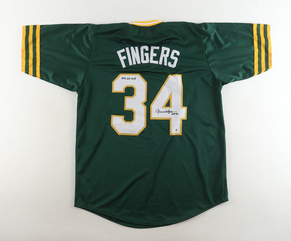 Rollie Fingers Signed Oakland A's Jersey Inscribed "HOF 92 & 74 WS MVP"/ Beckett