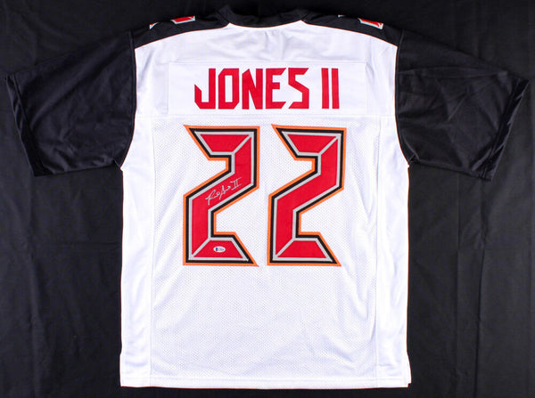 Custom on-field style jersey. Everything sewn on, size XL. Hand-signed in white paint pen by Ronald Jones II. The lot / autograph(s) includes an official Beckett Authentication Services serially numbered...