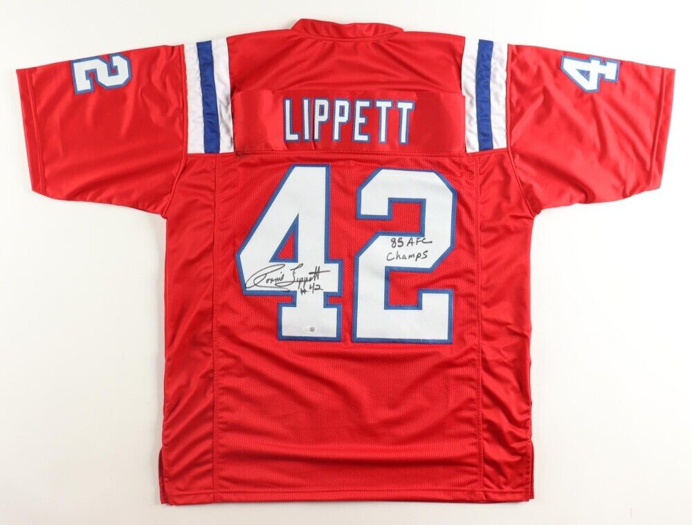 Ronnie Lippett Signed New England Patriots Jersey Inscribed "85 AFC Champs"(JSA)
