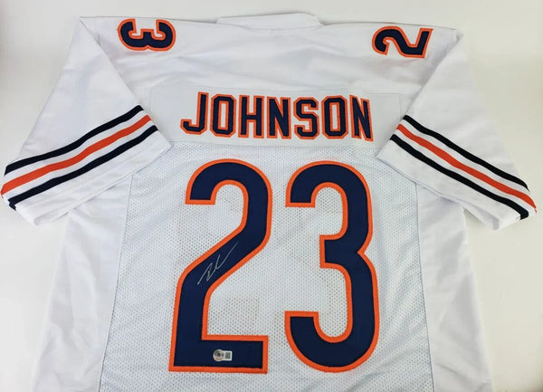 This autographed jersey has been personally hand-signed by Roschon Johnson of the Chicago Bears.This autograph is certified by Beckett Authentication Services (BAS) Witness Certification. That means that a Beckett representative...