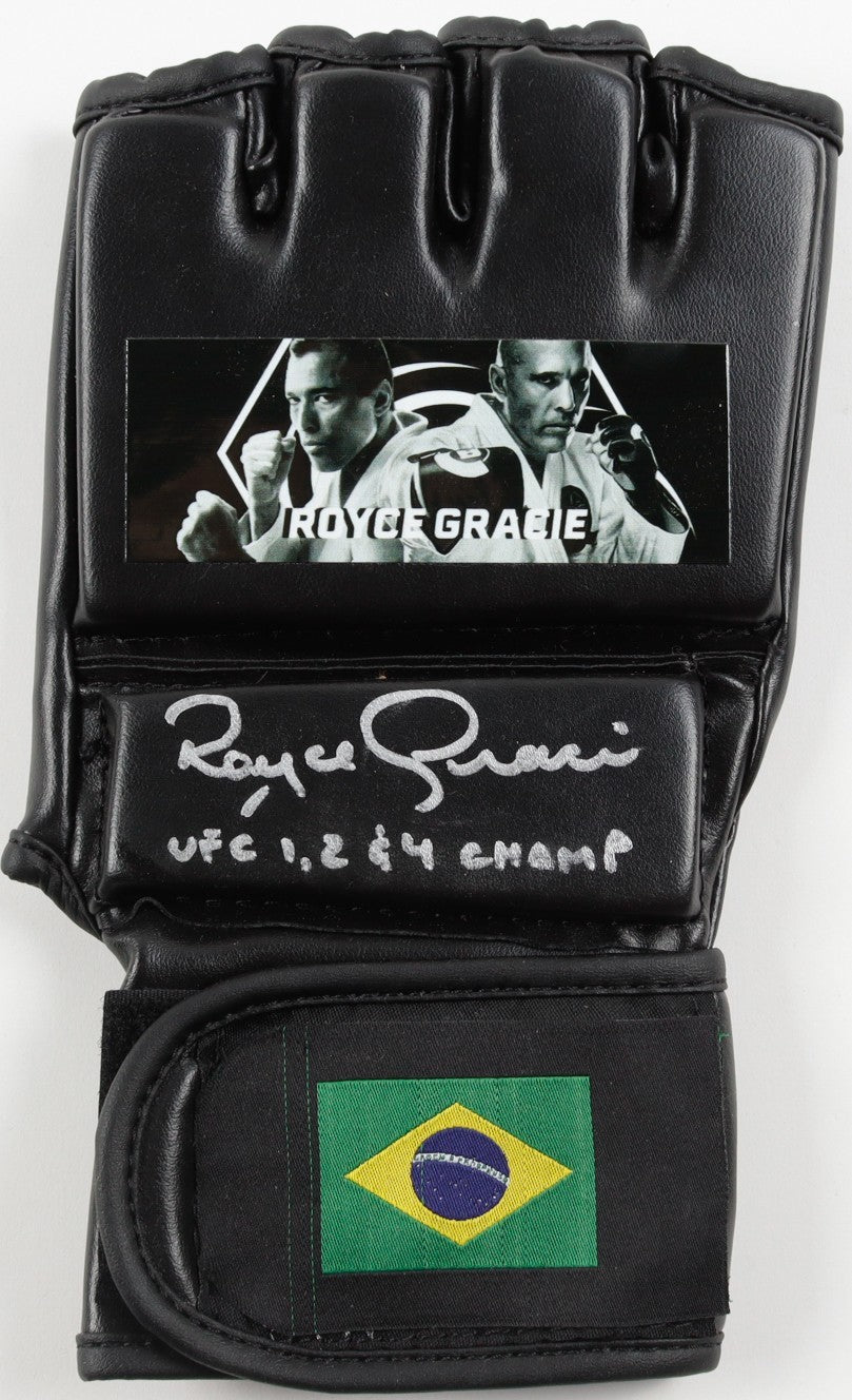 Royce Gracie Signed Brazil MMA Glove Inscribed "UFC 1, 2 & 4 Champ" (Beckett)