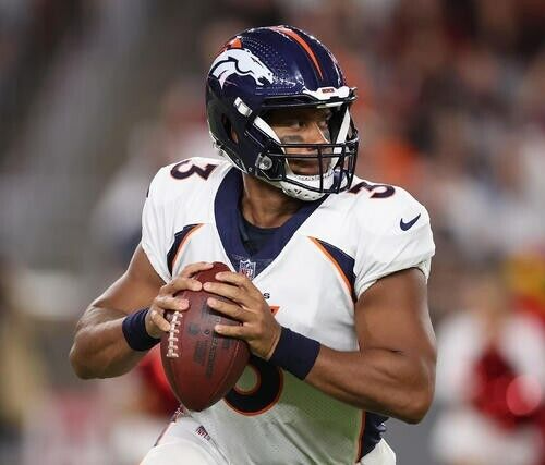 Russell Wilson Signed 35x43 Framed Denver Broncos Jersey (JSA QR) 9xPro Bowl QB