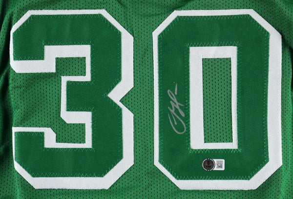 Custom on-court style jersey. Everything is sewn on, size XL. Hand-signed in black Sharpie pen by Sam Hauser (Boston Celtics). The autograph includes an official Beckett Authentication Services serially numbered hologram...