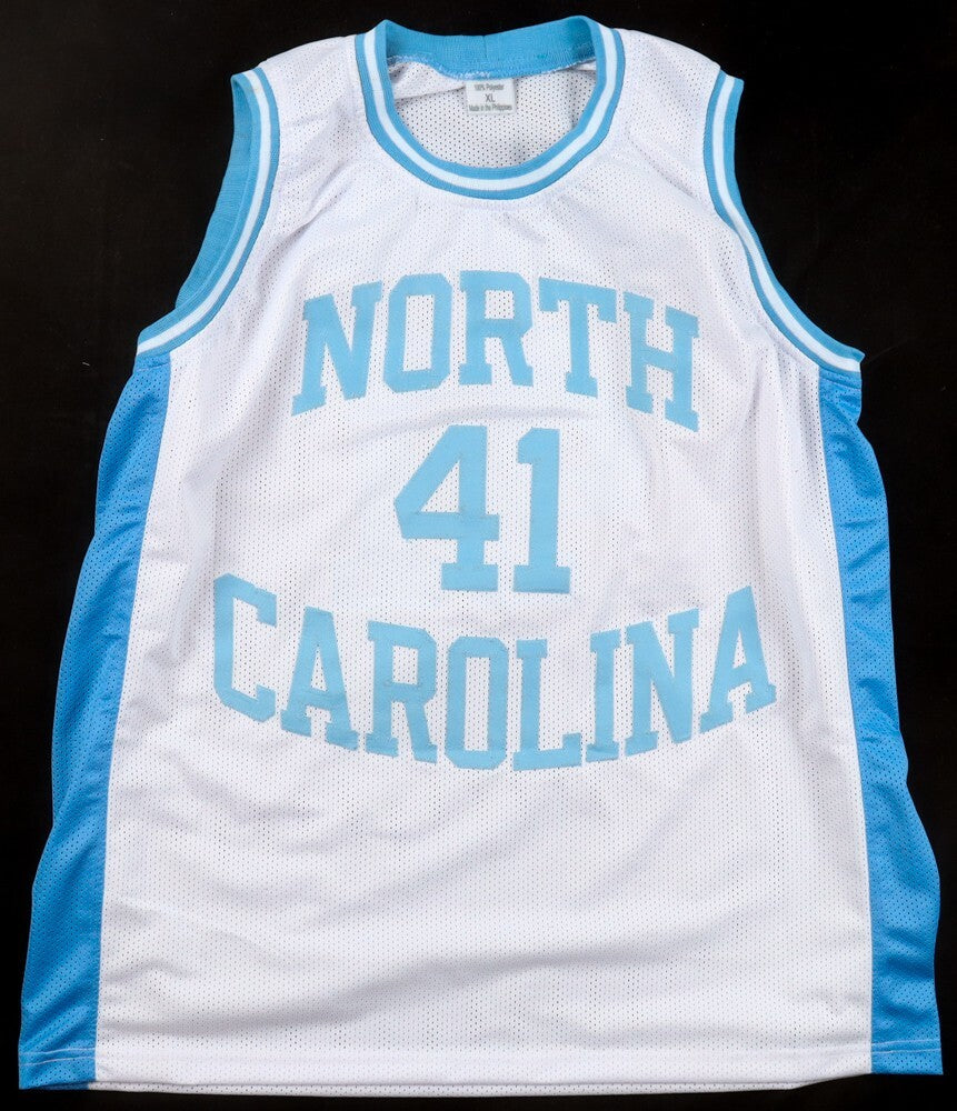 Custom on-court style jersey. Everything sewn on, size XL. Hand-signed by Sam Perkins (North Carolina Tar Heels).