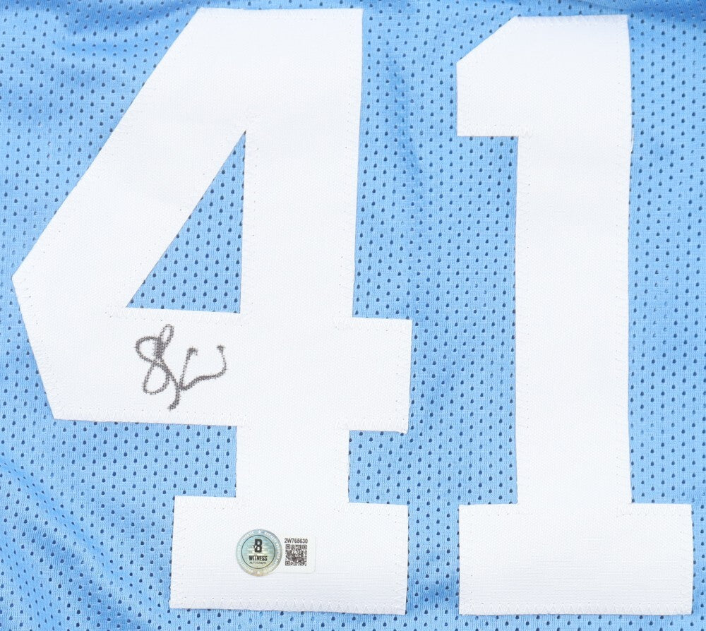 Sam Perkins Signed North Carolina Tar Heels Jersey (Beckett) 1984 1st Round Pick