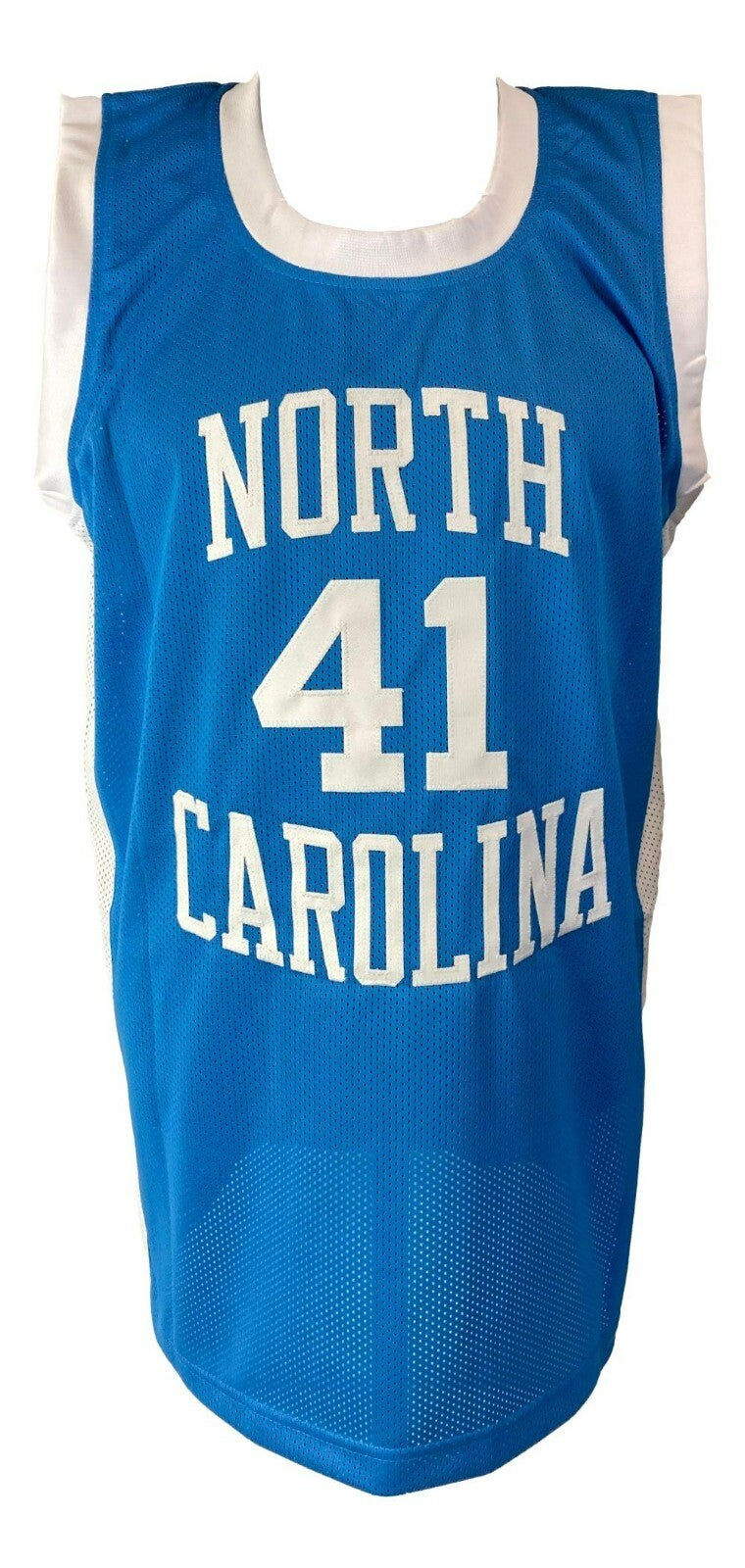 Custom on-court style jersey. Everything sewn on, size XL. Hand-signed by Sam Perkins (North Carolina Tar Heels).
