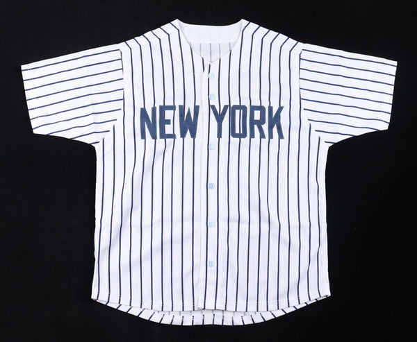 Custom on-field style New York Yankees jersey with everything sewn on, size XL. Hand-signed by Saturday Night Live's Pete Davidson. The autograph includes an official Beckett Authentication Services serially numbered...