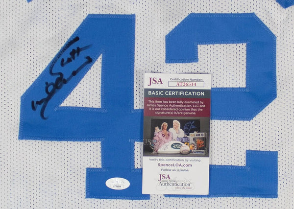 This autographed custom on-court style adult XL jersey has been personally hand-signed by Scott Williams of the North Carolina Tar Heels. This autograph is certified by James Spence Authentication (JSA). It...