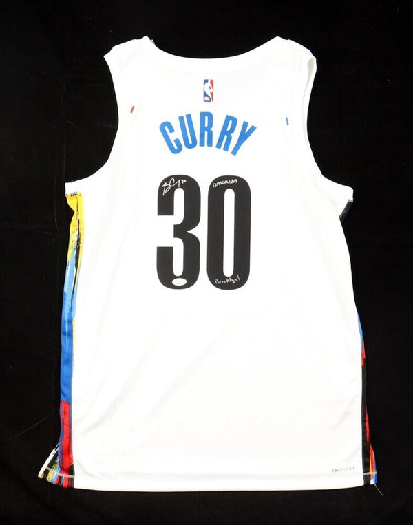 Nike NBA Replica jersey. Everything pressed on, size 48. Hand-signed and inscribed by Seth Curry (Brooklyn Nets). The autograph(s) includes an official James Spence Authentication (JSA) hologram and matching COA...