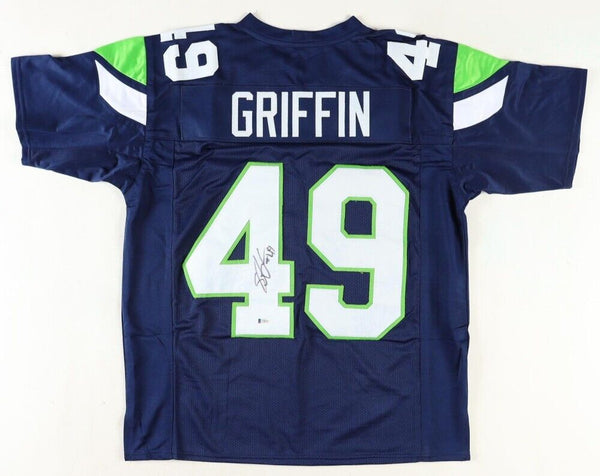 Custom on-field style jersey with everything sewn on, size XL. Hand-signed by Shaquill Griffin.The autograph includes an official Beckett Authentication Services serially-numbered hologram and matching COA for authenticity purposes.Authentication: Beckett...