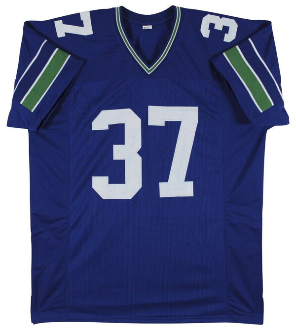 Custom on-field style jersey with everything sewn on, size XL. Has been hand-signed and inscribed by Shaun Alexander. The autograph includes an official Beckett Authentication Services serially numbered hologram as...