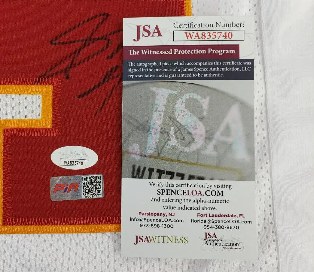 This autograph is certified by James Spence Authentication’s (JSA) Witnessed Protection Program. That means that a JSA representative was present when this item was signed. It comes with the numbered hologram and matching Certificate of Authenticity. This autograph is also certified by Players Ink. It comes with the numbered authentication hologram with a QR code that verifies the authentication on the Players Ink website. Scan the QR code with your mobile phone to verify the authenticity.